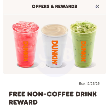 Update 12/25: Today is the last day to use this freebie Dunkin: Get a Large Non-Coffee Drink For Free! Instructions: ….. Get This Deal