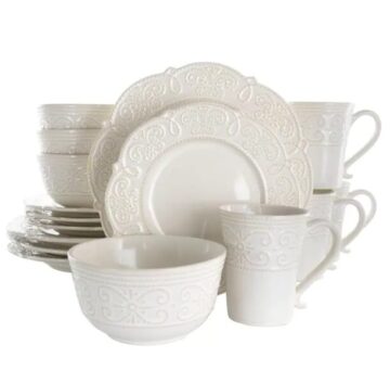 Elama 16-Piece Luna Embossed Scalloped White Stoneware Dinnerware Set $5.00 Stone Lain Lauren 32-Piece Beige Stoneware Full Set $5.00 Select ….. Get This Deal