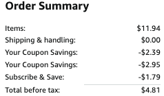 2. Now click here to go to deal and clip the $2.95 coupon on page and checkout with subscribe & save