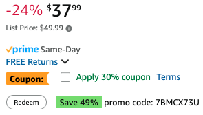 Instructions: Clip 30% coupon on page and Redeem the 49% promo on page.