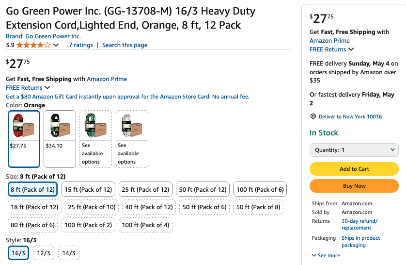 Pack of 12 Go Green Power 8-Ft Heavy Duty Extension Cords $27.75 Update: Dead