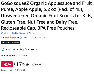 Pack of 48 GoGo SqueeZ Organic Applesauce Pouches $15.10-$16.87 Update: Dead