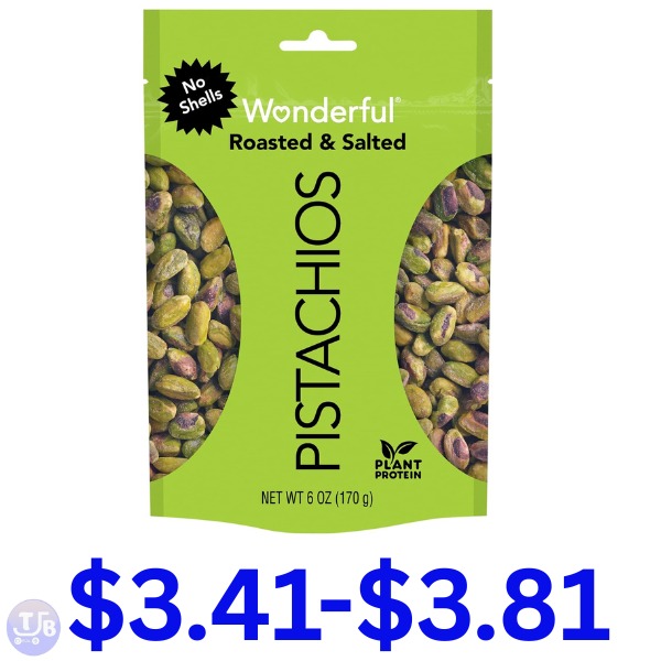 Wonderful Pistachios No Shells Roasted & Salted Pistachios $3.41-$3.81 Update: Dead