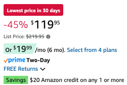 You’ll earn a $20 Amazon credit with this purchase — making your net cost just $99.95.