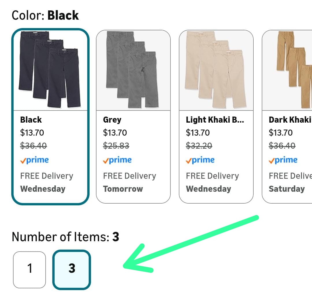 Note: When adding to cart, be sure that the “number of items” section is on the 3 (see image below)