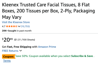 These deals below have a targeted 50% off coupon. Clip the coupon and it’ll stack with Subscribe & Save, which gives an extra 10%–20% off on this deal!