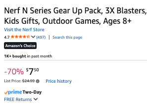 Nerf N Series Gear Up Pack 3-Blaster Set with 18 Foam Darts $7.50
