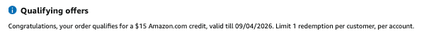 You’ll qualify for a $15 Amazon credit + $15 P&G Rebate