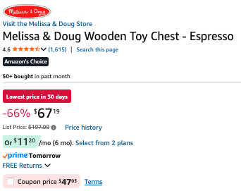Melissa & Doug Wooden Toy Chest $47