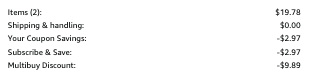 You will see stacking discounts of $9.89, $2.97 and the subscribe & save discount