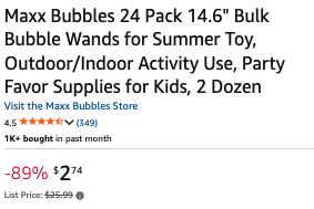 24-Pack Maxx Bubbles 14.6″ Bulk Bubble Wands $2.74