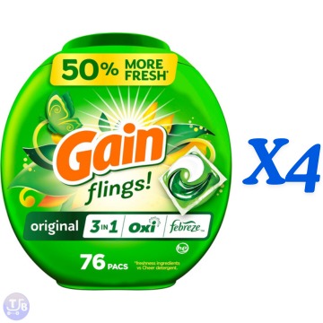 4 Cases of 76-Ct Gain flings Laundry Detergent Soap Pacs $38.49-$46.46 [Was $79] 4 Cases of 112-Ct Gain Flings Laundry ….. Get This Deal