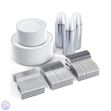 600-Pc White & Silver Disposable Dinnerware Set $44.99-$47.49 100 Premium Heavy Duty Disposable 10″ Dinner Plates 100 7″ Salad Dessert ….. Get This Deal
