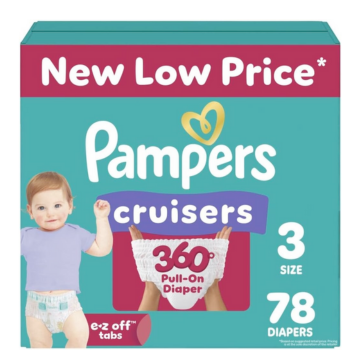 78-Ct Pampers Cruisers 360 Pull-On Size 3 Diapers $8.47-$9.97 Deal only on size 3 with 78 diapers Pampers Cruisers 360° ….. Get This Deal