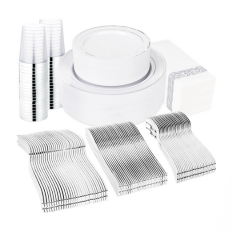 400-Pc Silver & White Disposable Dinnerware Set $31.63-$35.59 Clip $4 coupon on page which will stack with the subscribe & ….. Get This Deal