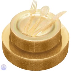 Update: Gold set sold out. Pink still available for $13.49 125-Pc Gold Plastic Plates & Silverware Set $12.49 Sold Out ….. Get This Deal