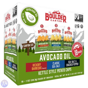 Pack of 18 Boulder Canyon Avocado Oil Kettle Chips $9.43-$10.54 18 oz box with 18 individual 1 oz bags of ….. Get This Deal