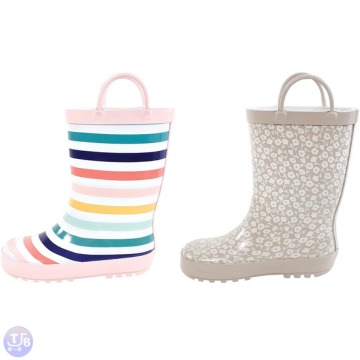 Hudson Baby & Toddler Rain Boots $13.50 Available in Taupe Ditsy Floral, Buffalo Plaid or Sunset Stripe Don’t Miss ….. Get This Deal