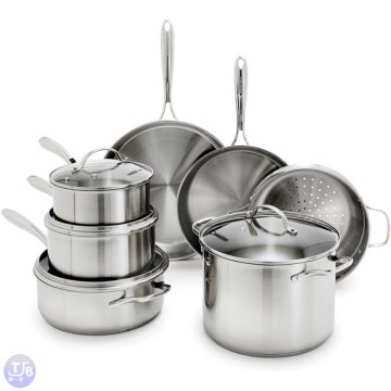 GreenPan 11-Piece Stainless Steel Cookware Set $125.99 COMPLETE 11 PIECE COOKWARE SET INCLUDES: 10” and 12” Frying Pans, 4QT Sauté Pan ….. Get This Deal